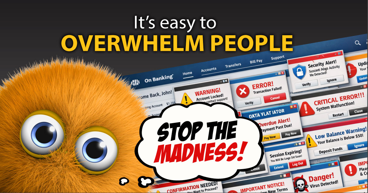 The problem is that more information is not always better. There are simply too many examples of fraud and scams to dump on your members all at once. It’s easy to overwhelm people with a stressful topic, so you have to be careful and intentional about how you communicate.