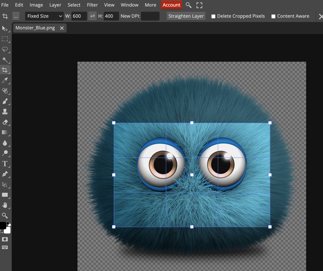 Let’s say you want to end up with a 600×400 pixel pair of hairy eyeballs for some odd reason… it might look something like this: